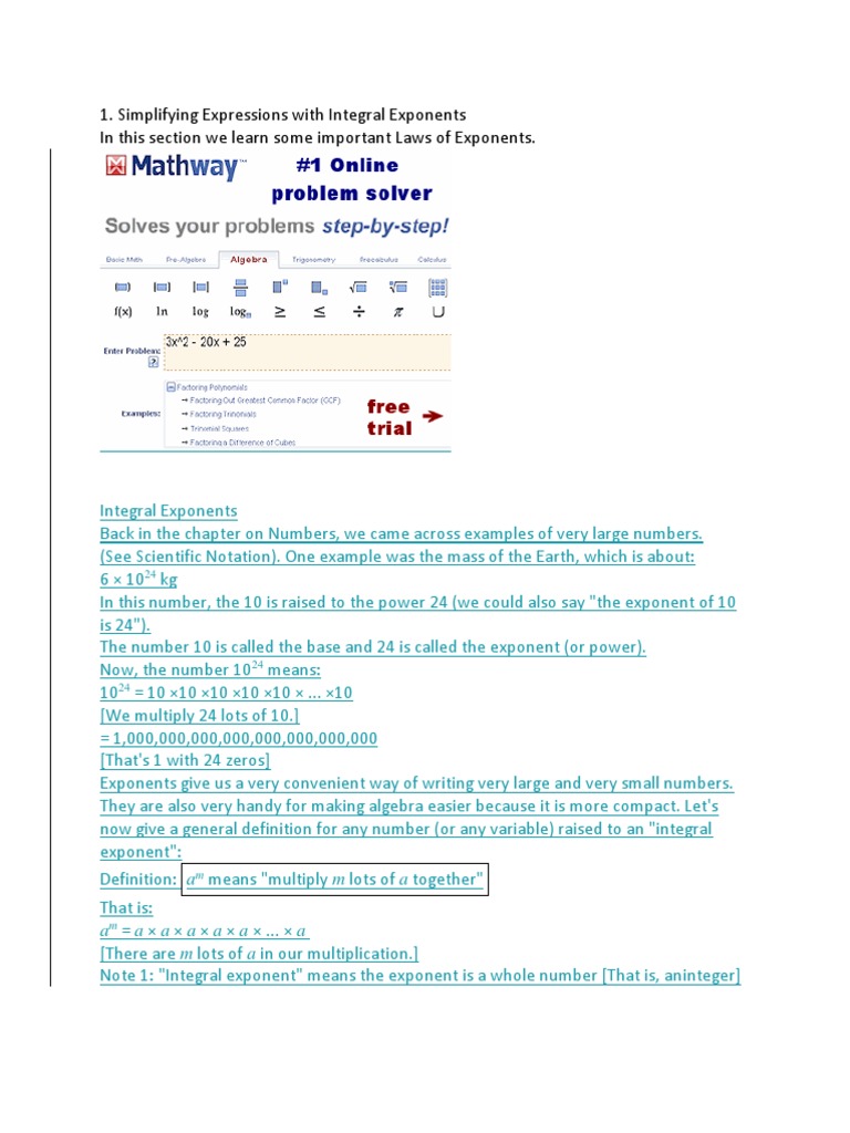 Exponents Examples Solutions Videos